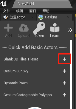 6.右键 获取 Cesium 3DTileset (组件 设置) 右边修改“默认值”(浏览)