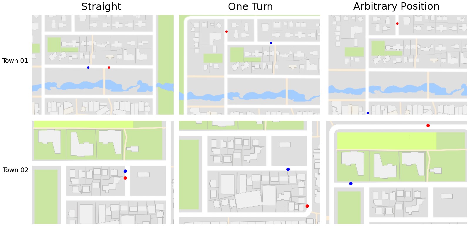 我们再选择两个姿势,一个用于直行,另一个用于简单转弯。此外,我们还为 Town02 选择三个姿势: