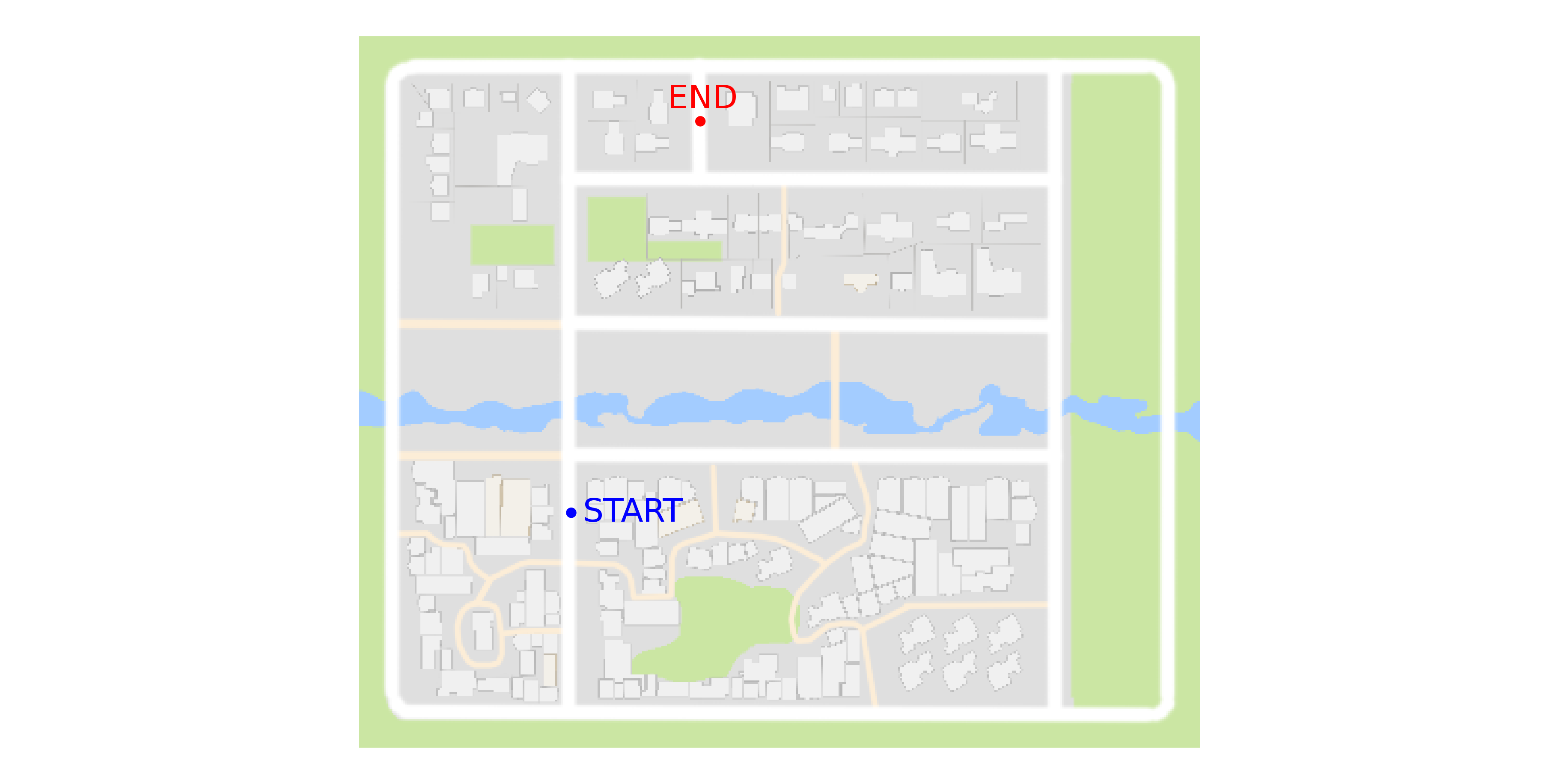 图:此基本实验套件示例中使用的姿势。姿势是目标导向情节的开始和结束位置的元组。开始位置显示为蓝色,结束位置显示为红色。左:直线姿势,其中目标与起始位置直线距离。中:一个转弯情节,其中目标与起点相距一个转弯。右:任意位置,目标距离起始位置较远,通常超过一个转弯。