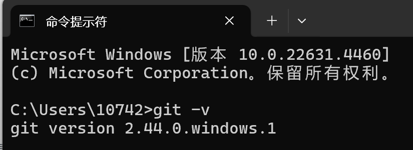- 安装完成后,在终端(或 cmd 命令提示符)中输入git -v,出现如下图所示版本号即表示安装成功。