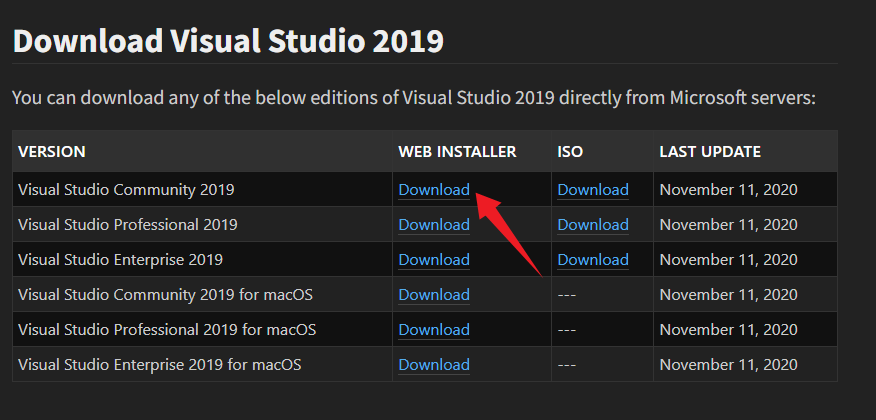 从 此处 获取 2019 版 Visual Studio 。选择 社区 作为免费版本。使用 Visual Studio 安装程序 安装三个附加元素: