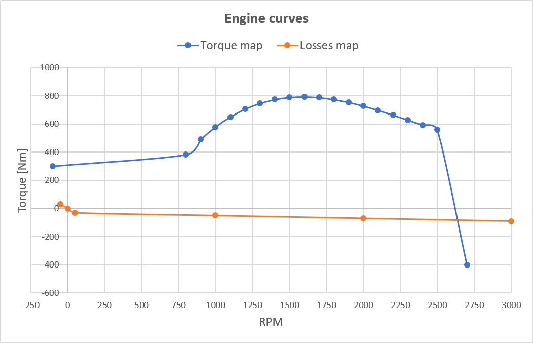 - 发动机 ( ChShaftsThermalEngine ),通过速度扭矩曲线指定