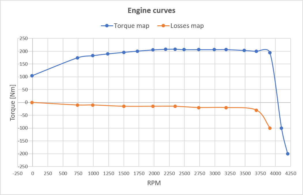 该模型采用简单的速度-扭矩依赖性,没有扭矩转换器和变速箱。