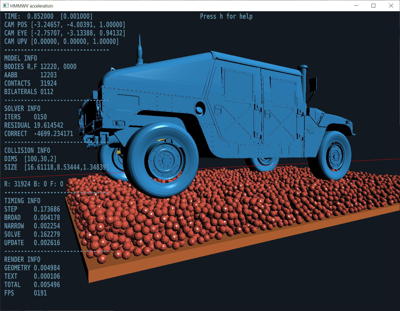 Chrono::Vehicle 模拟还可以使用 Chrono::OpenGL 模块在运行时进行可视化。这提供了更快捷、计算效率更高的可视化,尤其是对于大规模模拟(例如涉及车辆与颗粒地形交互的模拟)。