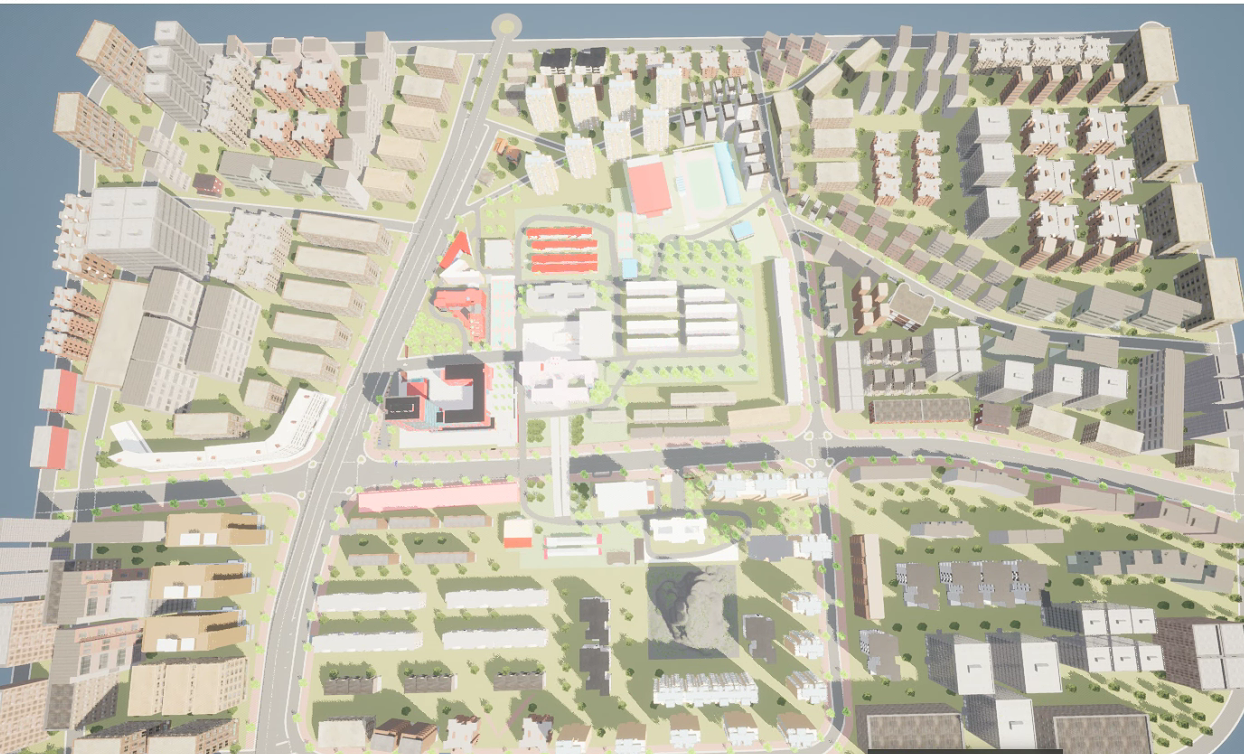 本示例使用的为 carla 插件作为渲染引擎,进行建筑、树、山等的设计。