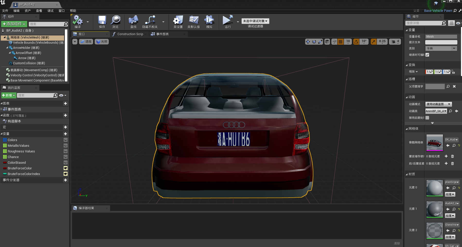 - 进入车辆资产编辑界面后,双击网格体(VehicleMesh)继承,会出现车辆以及车辆所引用的资产。