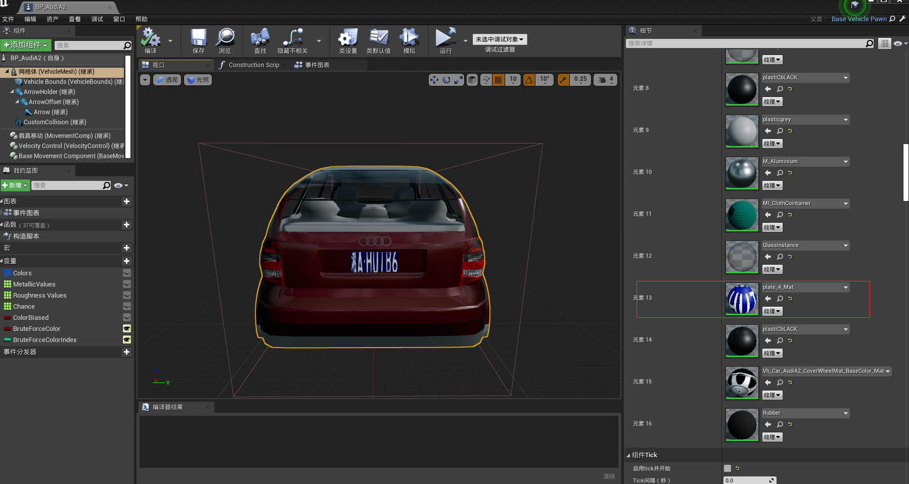 - 找到车辆车牌位置,将材路径替换为先前所准备的自定义材质。