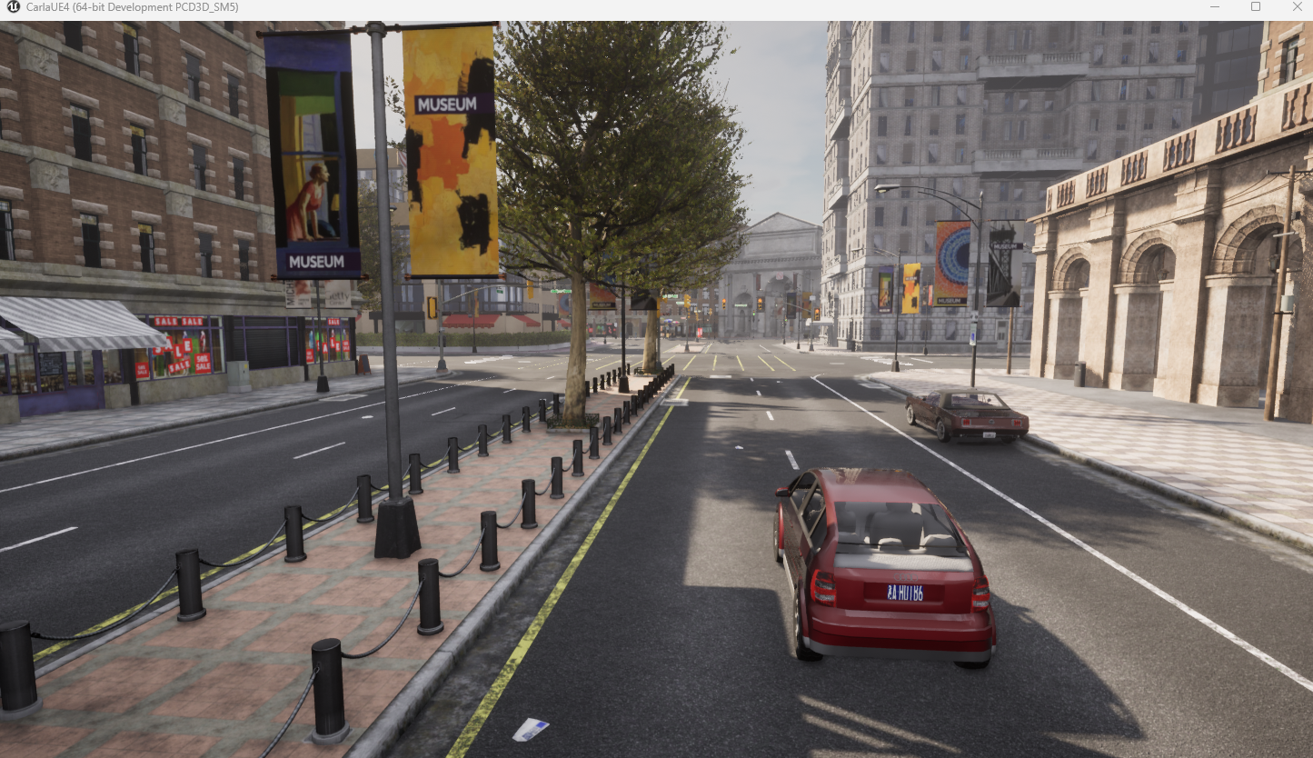 运行 Python 脚本在场景中添加已经被替换过车牌的车辆,调整视角,观察车牌。最后显示结果如下图所示: