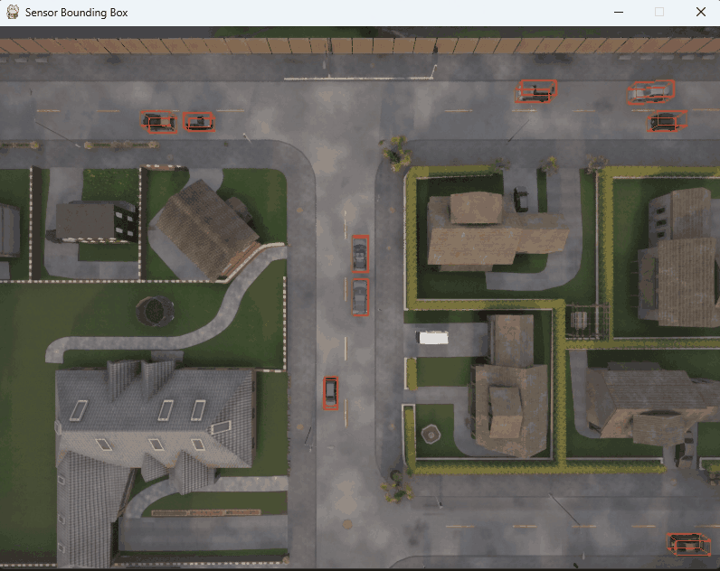 python examples/sensor_bounding_box.py --host localhost --port 2000 --rolename hero --view above --distance 100 --res 800x600 --fov 90
