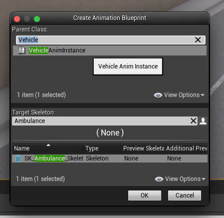 1.在 Ambulance/Mesh 目录中创建一个新的动画蓝图(如果有的话,否则在 Ambulance 内创建一个新的文件夹 Mesh/)。