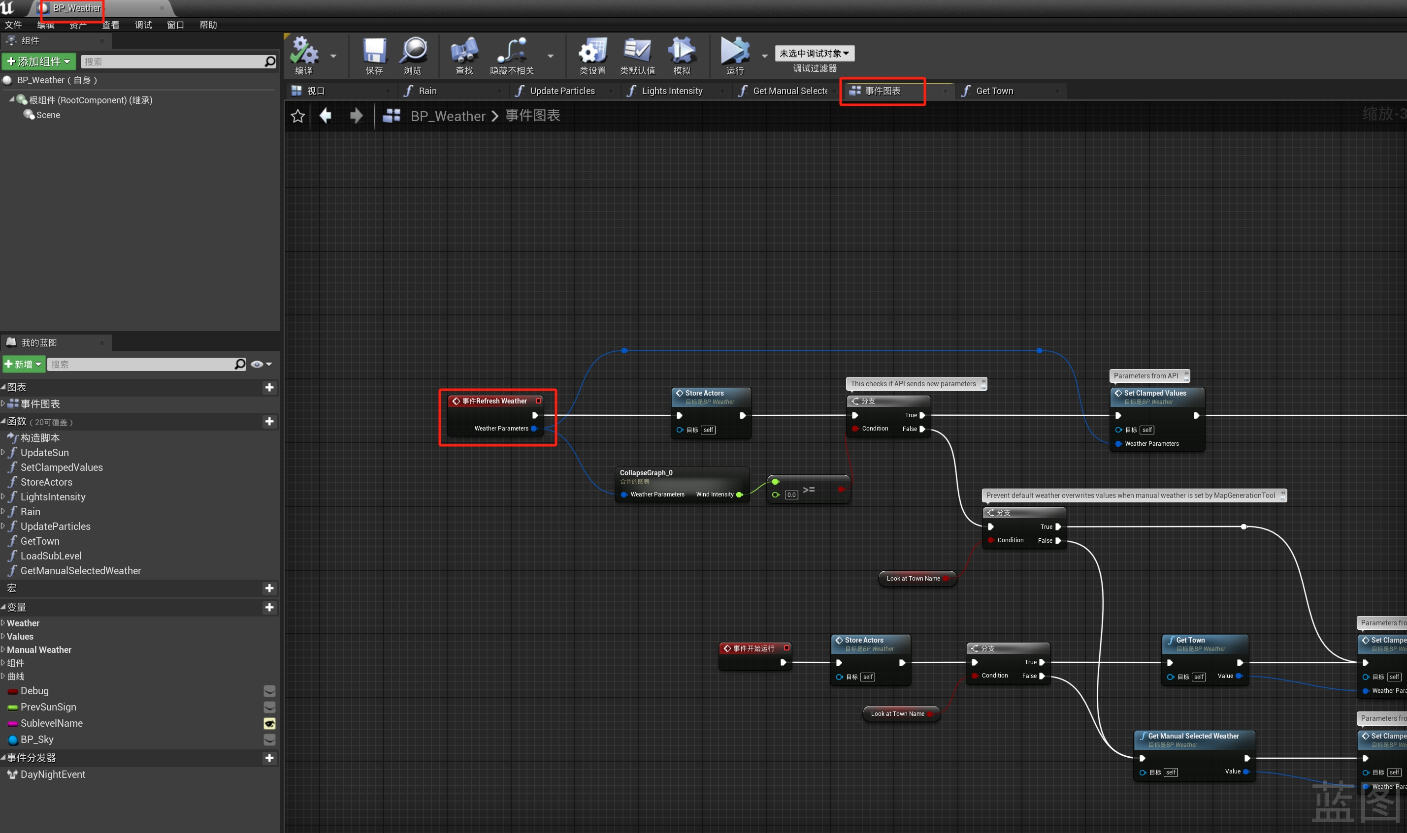 使用蓝图控制:将部分天气逻辑移到蓝图中,便于美术调整