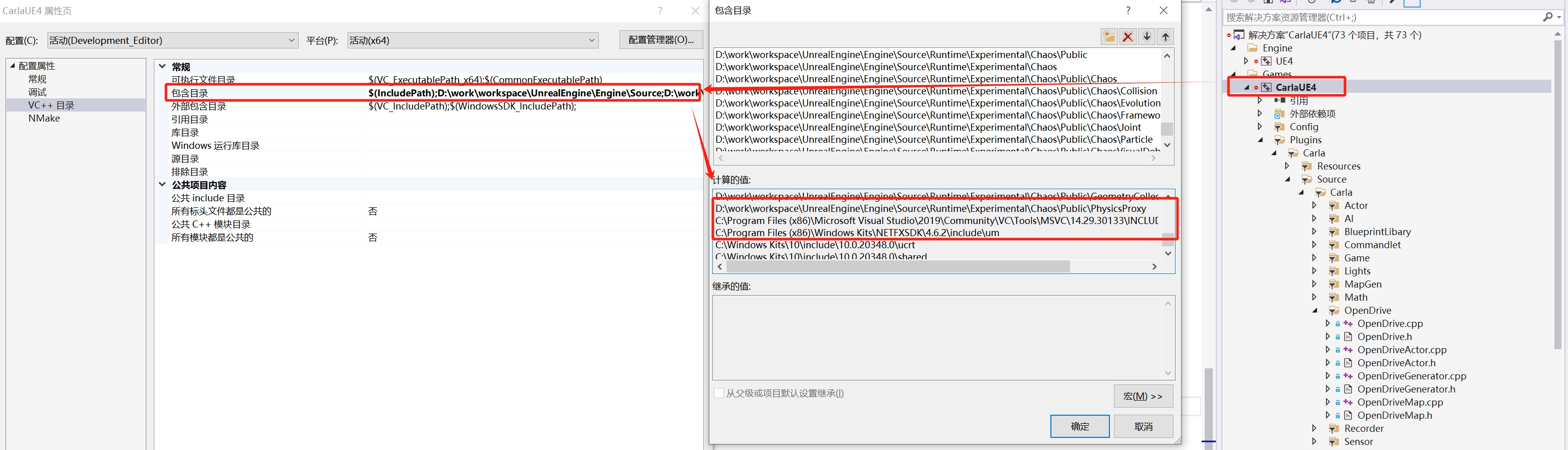 该插件模块编译配置,与配置VS中的项目属性类似,包含进了依赖库等。包括虚幻引擎、VS、Windows Kits的头文件目录: