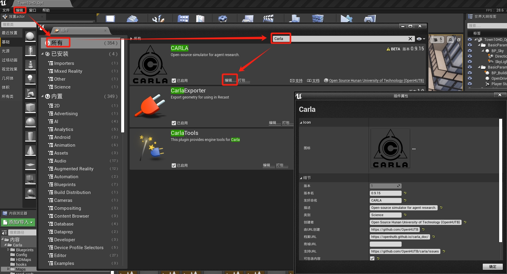 Carla.uplugin 是插件json格式的插件描述文件,可以在插件编辑器中进行修改。